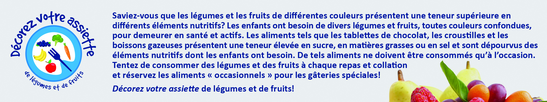 Décorez votre assiette de légumes et de fruits |
